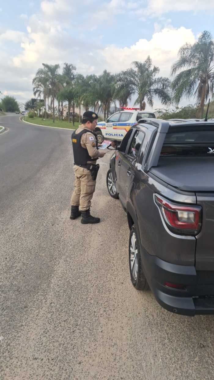 Ação reuniu Polícia Militar, DER/MG e Diretoria Municipal de Trânsito para conscientizar motoristas sobre segurança viária.