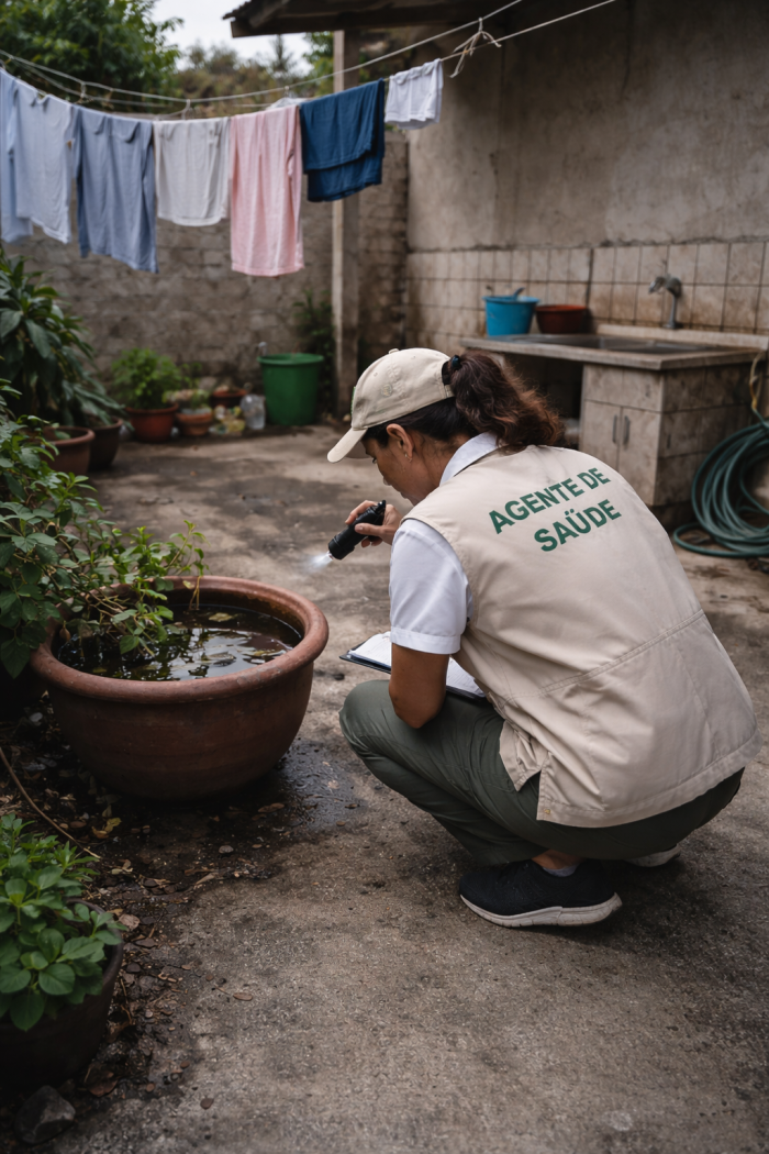 Na prática, o mosquito encontra vantagem justamente onde a vigilância costuma ser menor. E esse talvez seja o traço mais duro da dengue: ela cresce no ponto em que a prevenção parece simples demais para ser levada a sério.